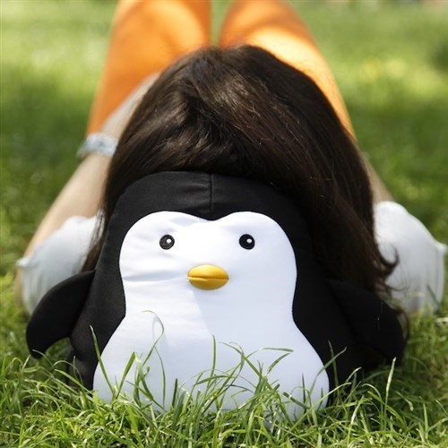 Dragalasul pinguin se transforma in perna pentru gat la nevoie. Tot ce trebuie sa faceti este sa deschideti fermuarul si sa rasuciti animalutul.