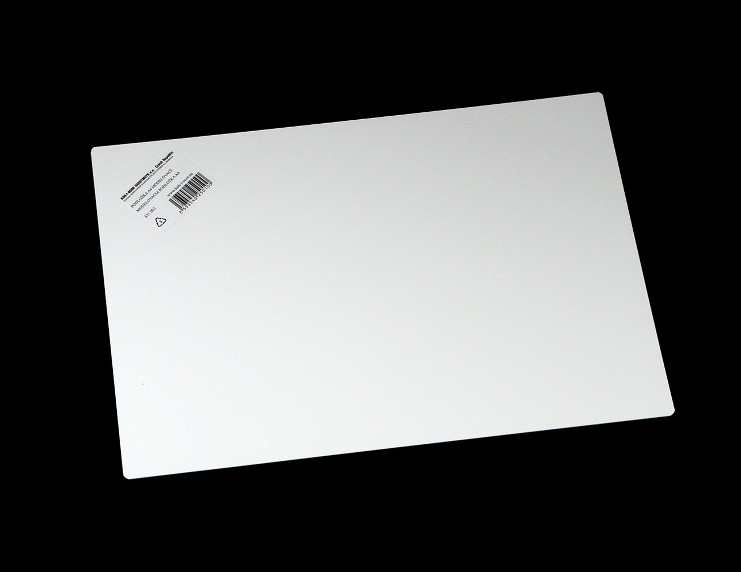 Plansa plastic pentru modelat plastilina, format A4, se pune pe masa, sau pe banca la scoala. Pentru o mai mare siguranta colturile sunt rotunjite. Se poate spala usor cu apa.