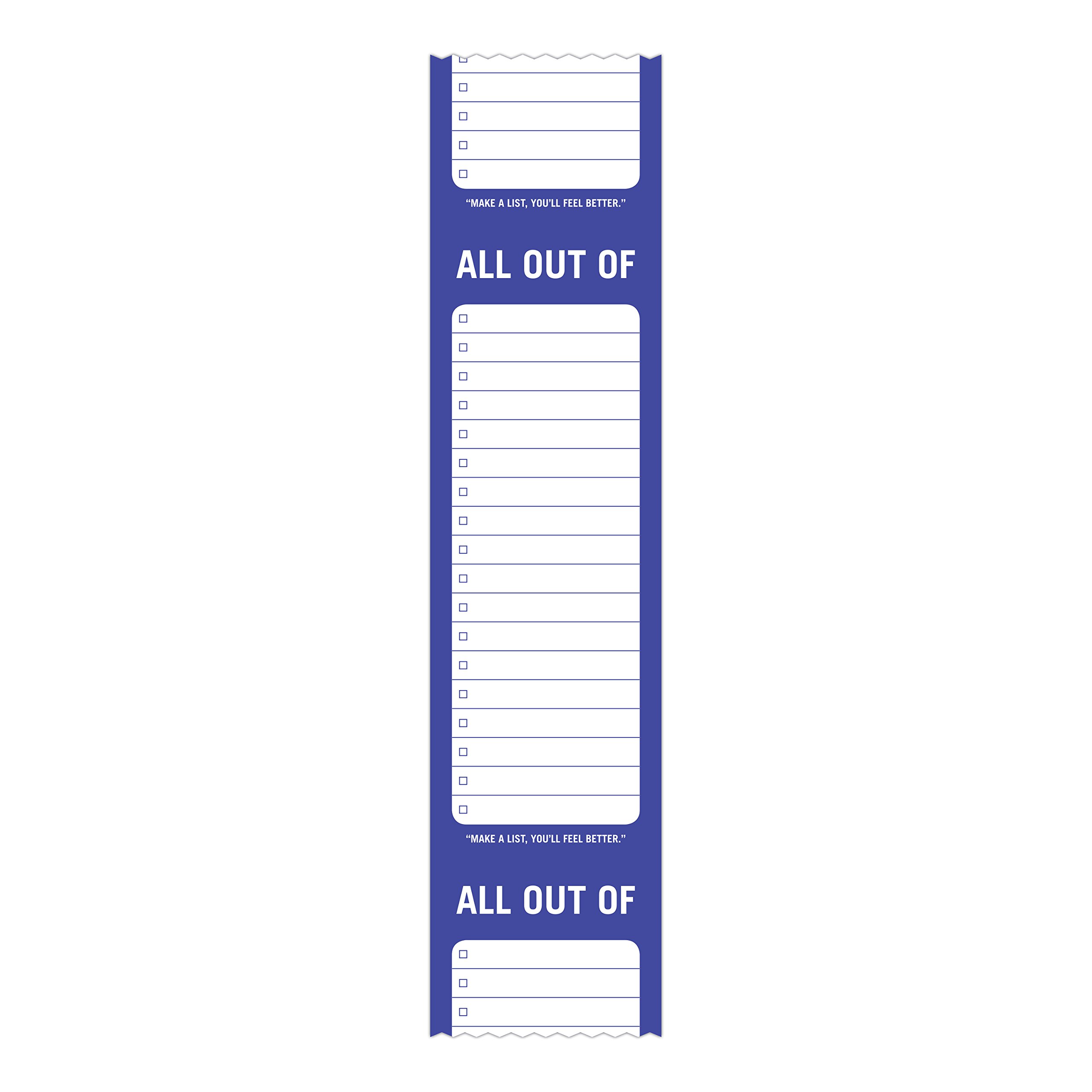 Sticky notes amuzante, însumând 8 metri lungime, fiind prevăzute cu mesajul ”All Out Of”. Ideale pentru a-ți nota lucrurile pe care nu vrei să le uiți!