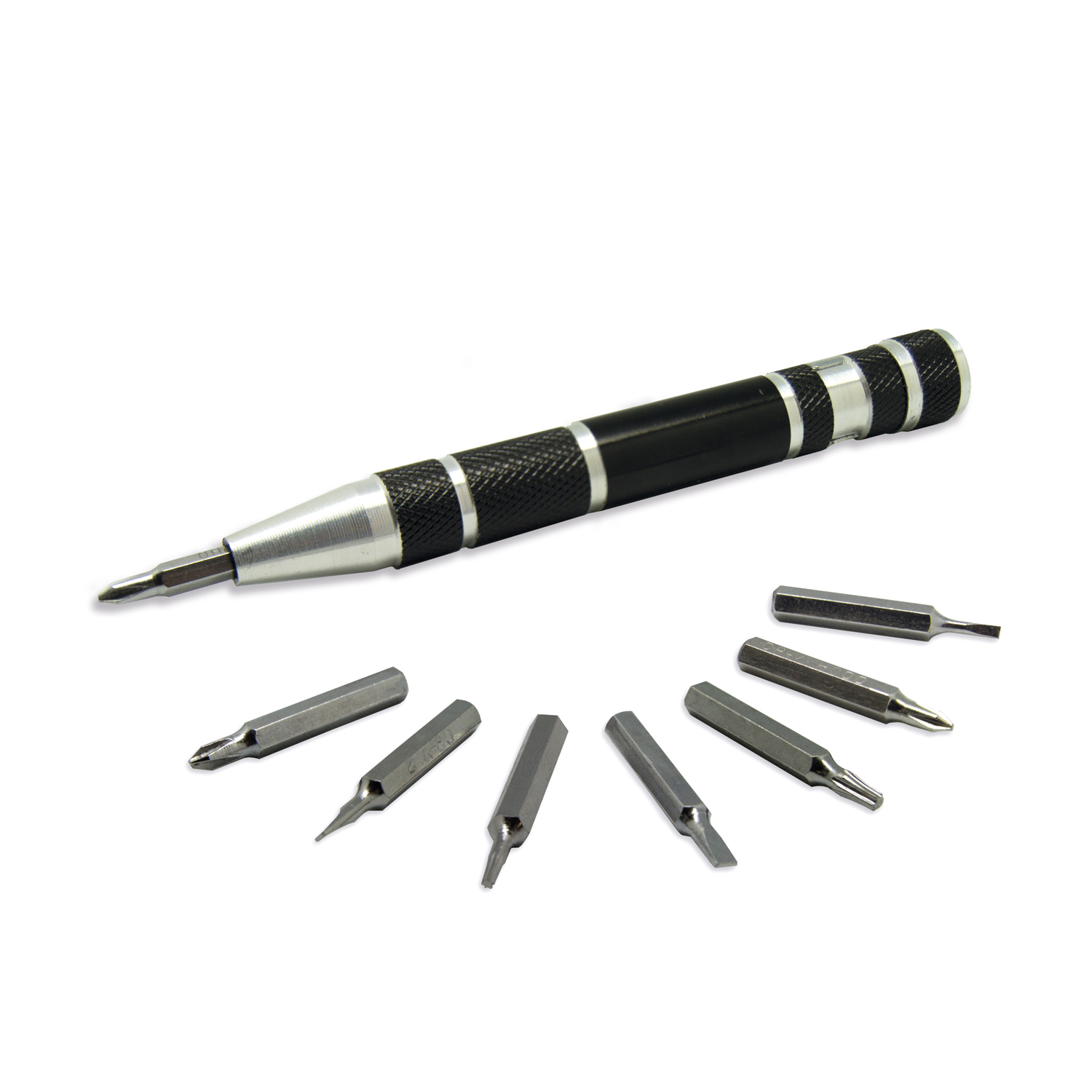 Setul contine o surubelnita in forma de pix si 8 capete pentru surubelnita.
