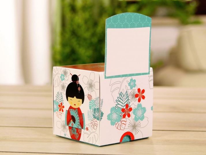 - A highly refined carton-box measuring 11 cm x 11 cm