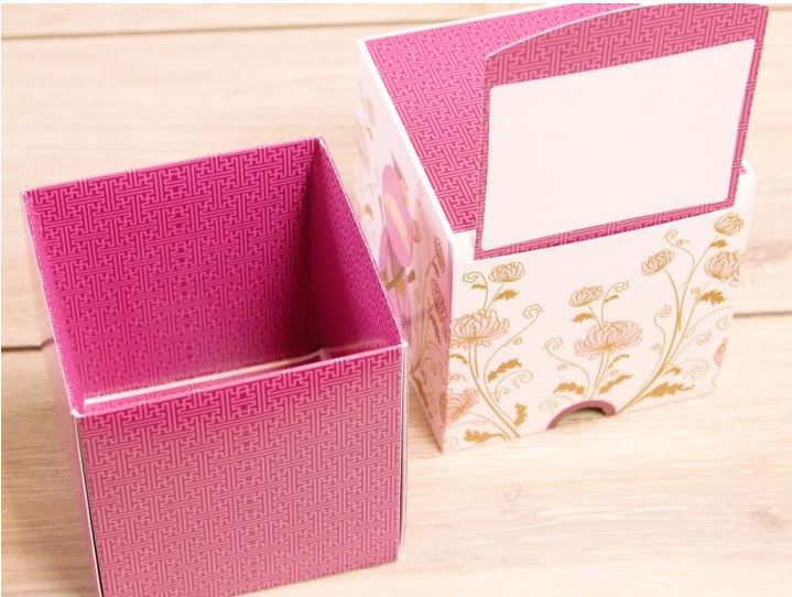 - A highly refined carton-box measuring 11 cm x 11 cm