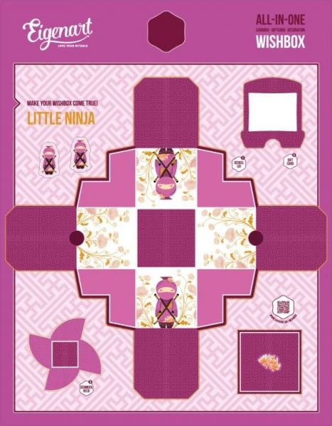A Wishbox comprises of one box with a fitting slip lid and a card in a special pocket. The boxes are very stable and do not fall apart thanks to the particular Venetian folding technique, which does not require further adhesive materials.
