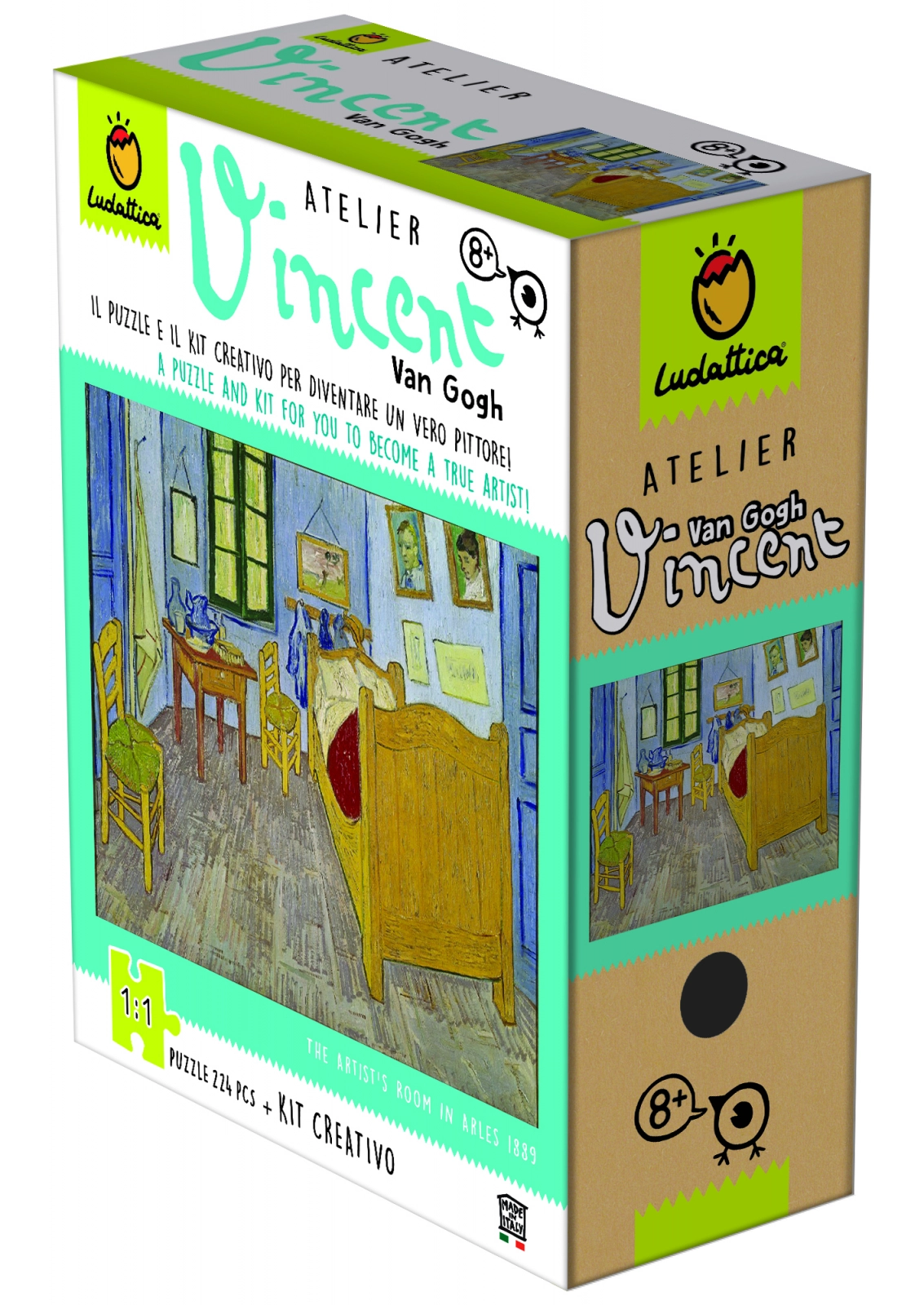 Descoperiți-l pe Vincent Van Gogh și impresionismul cu acest kit compus dintr-un puzzle, având ca reproducere tabloul Camera din Arles și diverse materiale pentru a crea propria lucrare de artă.