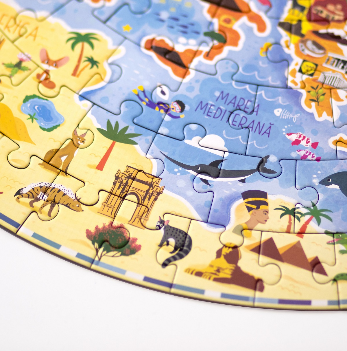 In timp ce asambleaza puzzle-ul si rasfoiesc brosura, cei mici au posibilitatea de a face cunostinta cu cele mai importante simboluri si obiective turistice ale Europei.