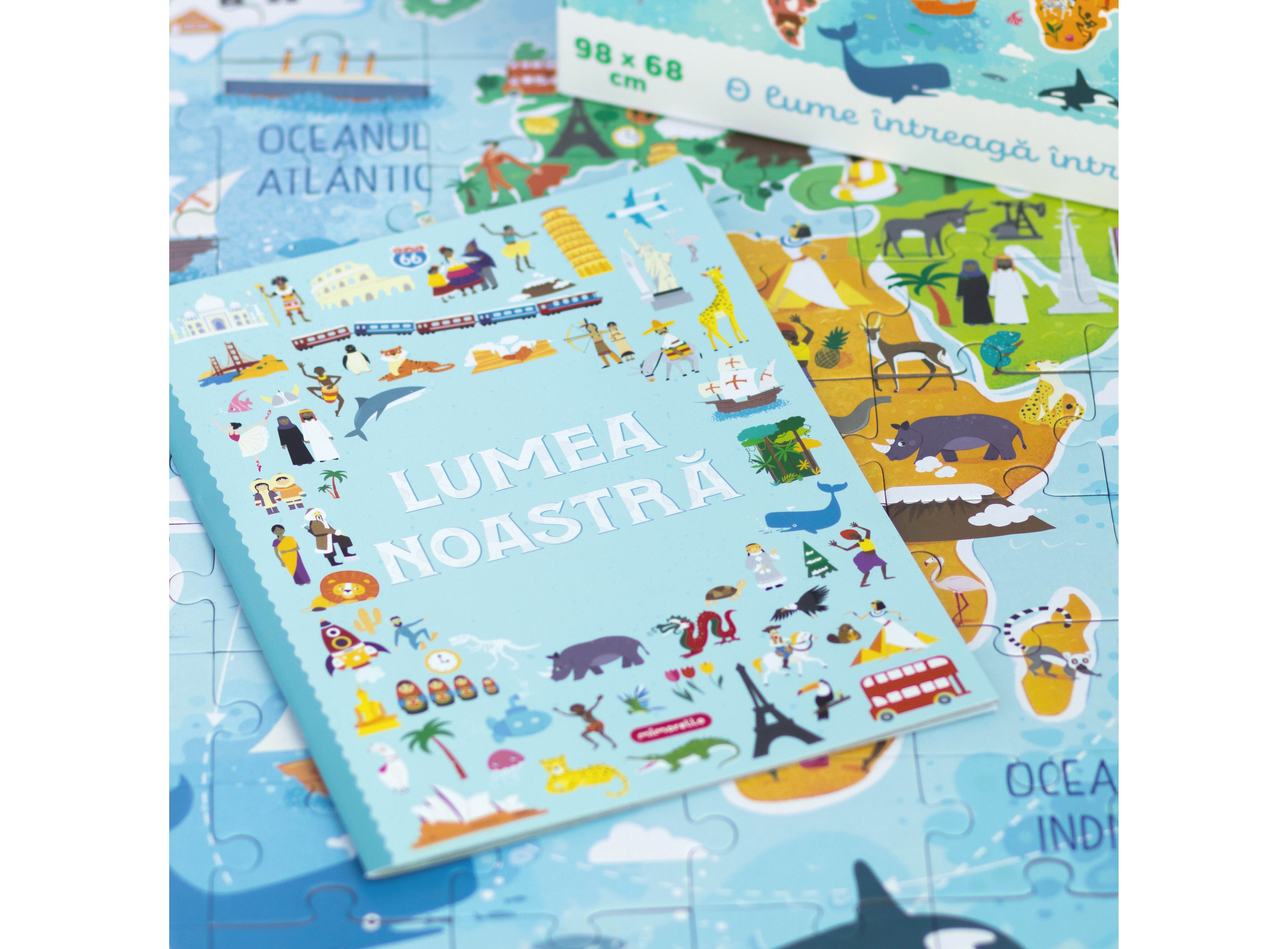 Atât puzzle-ul, cât și cartea atașată acestuia, le oferă celor mici șansa de a călători în jurul lumii, descoperind într-un mod simplu, educativ și distractiv cele mai importante atracții și simboluri ale fiecărui continent, dar și oportunitatea de a face cunoștință cu primele noțiuni de geografie. În plus, desenele jucăușe și sugestive, însoțite de explicațiile fiecărui simbol în parte și de noțiunile de cultură generală de pe paginile broșurii, îi vor ajuta pe copii să vizualizeze specificul fiecărei regiuni, în timp ce se aventurează într-o inedită călătorie imaginară peste mări și țări.