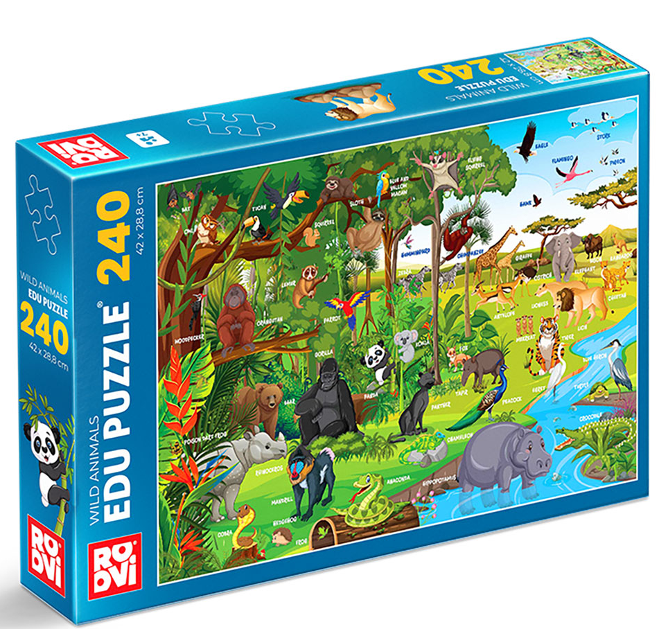 Edu Puzzle 240 – Animale Sălbatice este acel joc puzzle minunat care te apropie de copii și creează premisele pentru conectare și bucurie sinceră împreună. Pentru zilele cu vreme rea, vacanțe sau sărbători, Edu Puzzle 240 – Animale Sălbatice este prilej de relaxare, învățare și distracție.