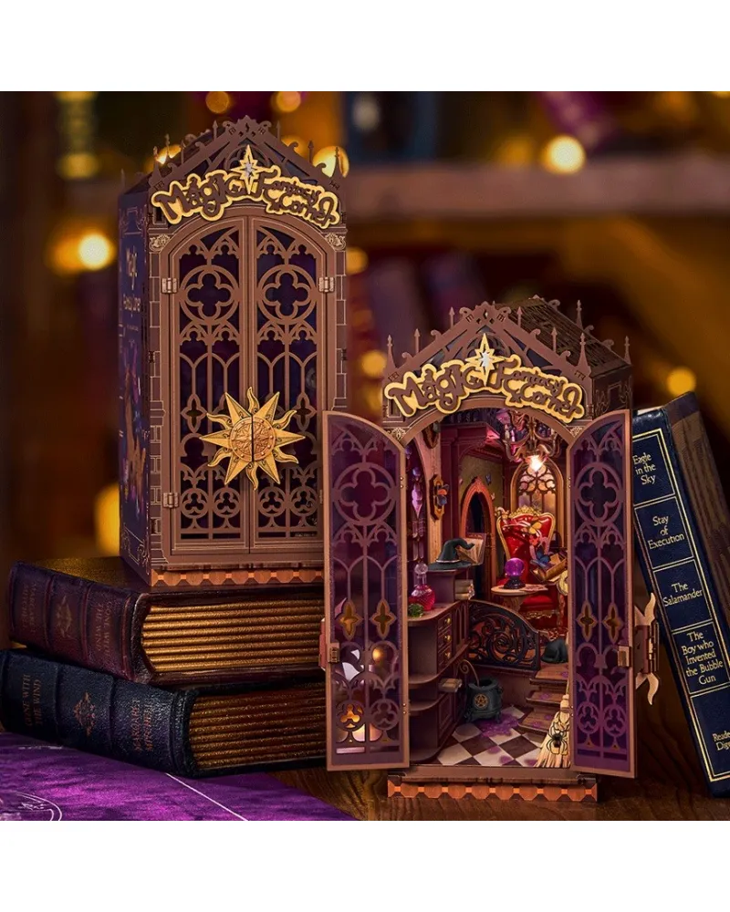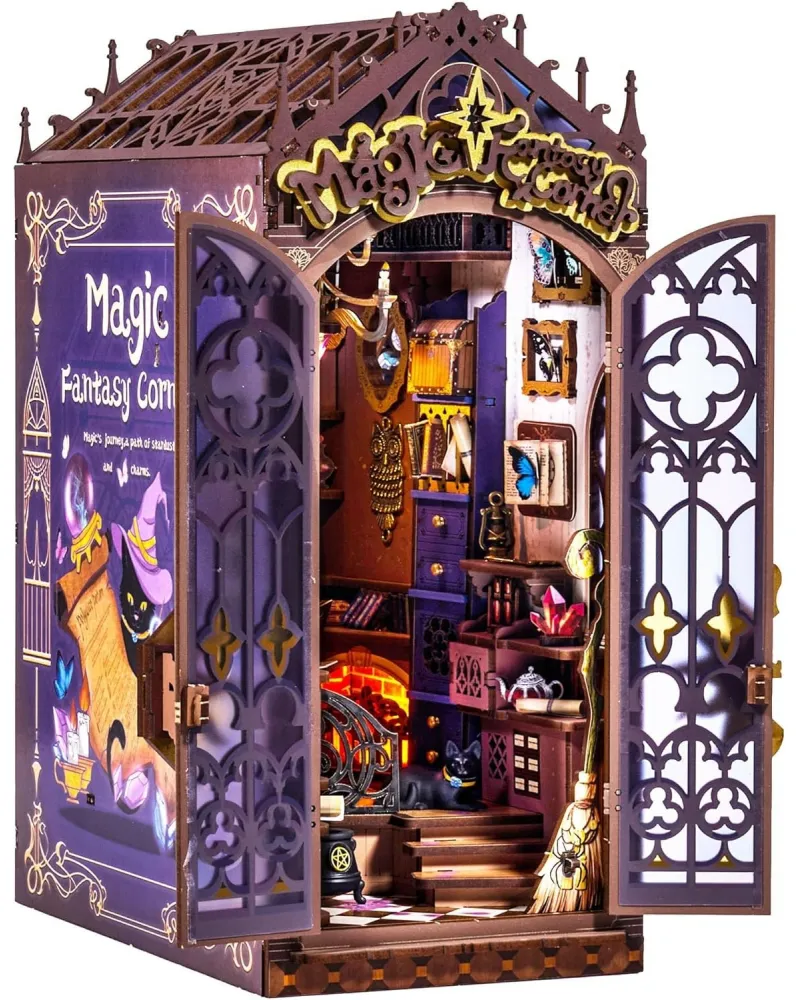 Transformă-ți biblioteca într-un colț de poveste cu Magic Fantasy Corner, un minunat book-nook DIY din seria „Stories in Books” de la Rolife. Creat pentru iubitorii de miniaturi și fantezie, acest kit aduce pe raftul tău atmosfera unui mic sanctuar magic, plin de detalii uimitoare.