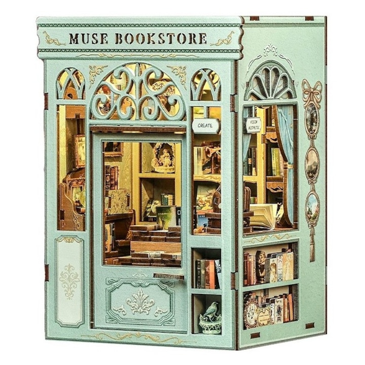 Descopera Muse Bookstore, o macheta DIY fermecatoare, unde atmosfera calda a unei librarii artizanale prinde viata in cele mai mici detalii. Cu 201 piese si un timp de asamblare de aproximativ 2 ore, acest proiect este perfect atat pentru incepatori, cat si pentru pasionatii de miniaturi care isi doresc o experienta relaxanta si creativa.