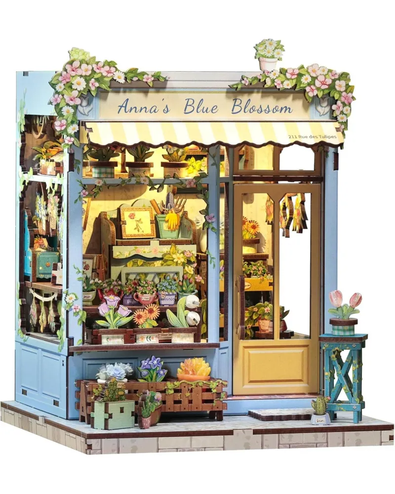 Floarea albastra a Annei este mai mult decât un magazin de flori — este un vis de vară surprins în lumină delicată și nuanțe pastelate. Inspirată de strălucirea blândă a după-amiezelor însorite și de parfumul florilor purtat de adiere, această mini scenă de grădină trezește un sentiment de pace și nostalgie. Fiecare detaliu, de la coșurile pline de flori până la semnele scrise de mână, spune o poveste despre frumusețe liniștită și farmec atemporal. Când pășești înăuntru, descoperi nu doar flori, ci o stare: liniște, delicatețe și o lume care pare să plutească la marginea amintirii.