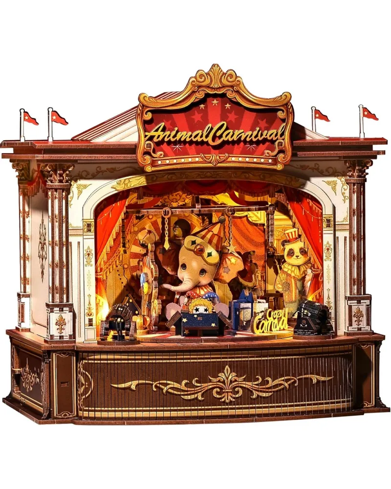Îți mai amintești magia târgurilor din copilărie? Luminile strălucitoare, melodiile vesele și micile scene unde fiecare spectacol părea o minune. Animal Carnival Wooden Music Box readuce la viață acele amintiri. Piesă cu piesă, pe măsură ce construiești scena cu propriile mâini, nu creezi doar un model — recreezi un moment pur de bucurie. Iar când melodia începe să cânte, e ca și cum ai păși într-o amintire caldă în care timpul încetinește și fericirea devine simplă din nou.