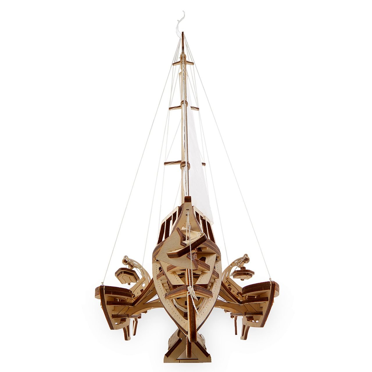 Designerii Ugears au folosit un fir alb puternic, dar subtire, pentru tachetarea barcii. Acesta asigura ca structura acesteia sa ramana neteda si usoara.