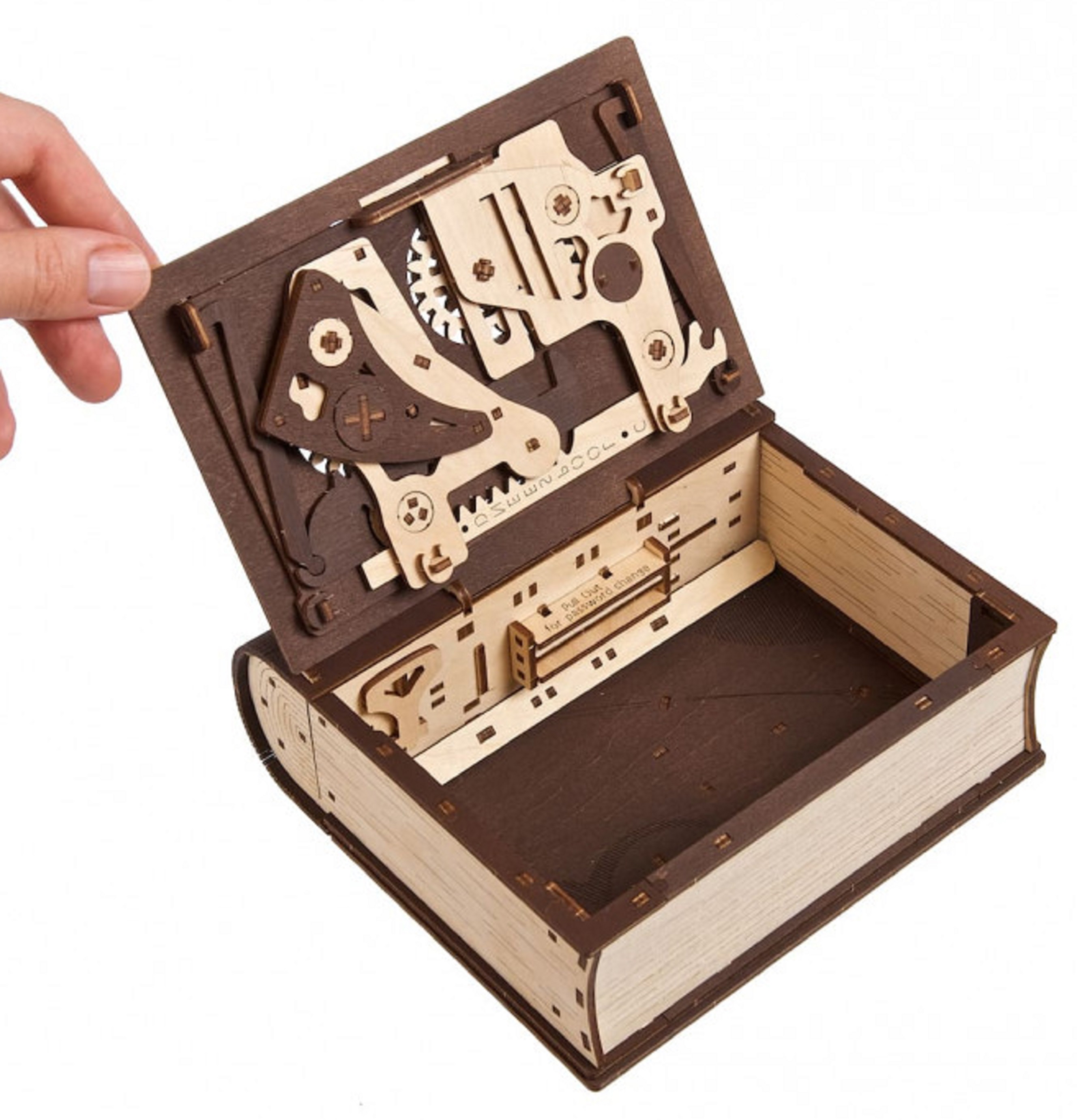 Acest puzzle 3D cu 263 piese este perfect pentru iubitorii de cărți, dar și de mecanisme. Cartea secretelor este perfectă pentru a-ți încuia în ea secretele, astfel încât să fie departe de ochii curioșilor. Pentru a o deschide, ai nevoie de o combinație de 3 cifre pe care o știi doar tu.