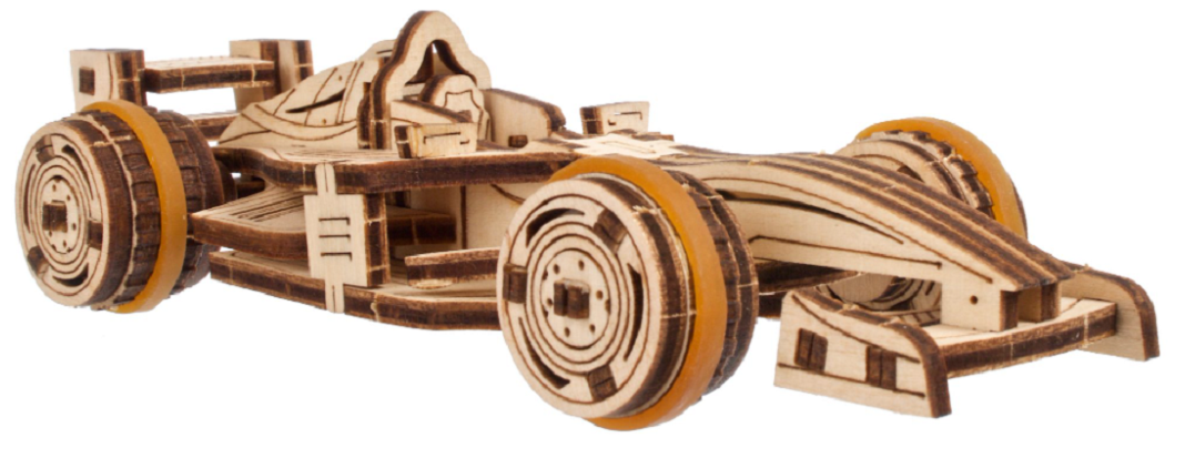Compact Racer are un design aerodinamic elegant, pentru a-i oferi aspectul realist al unui racer de top de performanta. Ugears’ Compact Racer poate rula cand il impingi de-a lungul unei suprafete plate si are anvelope cauciucate, aderente pentru viraje.
