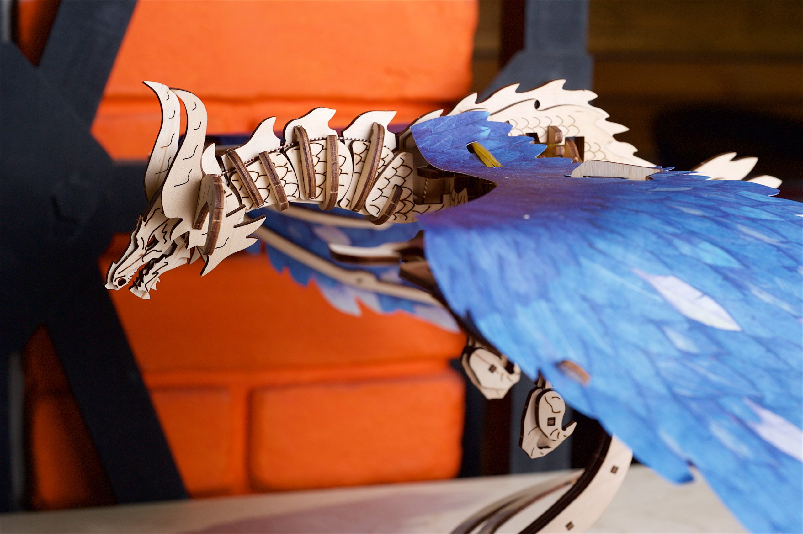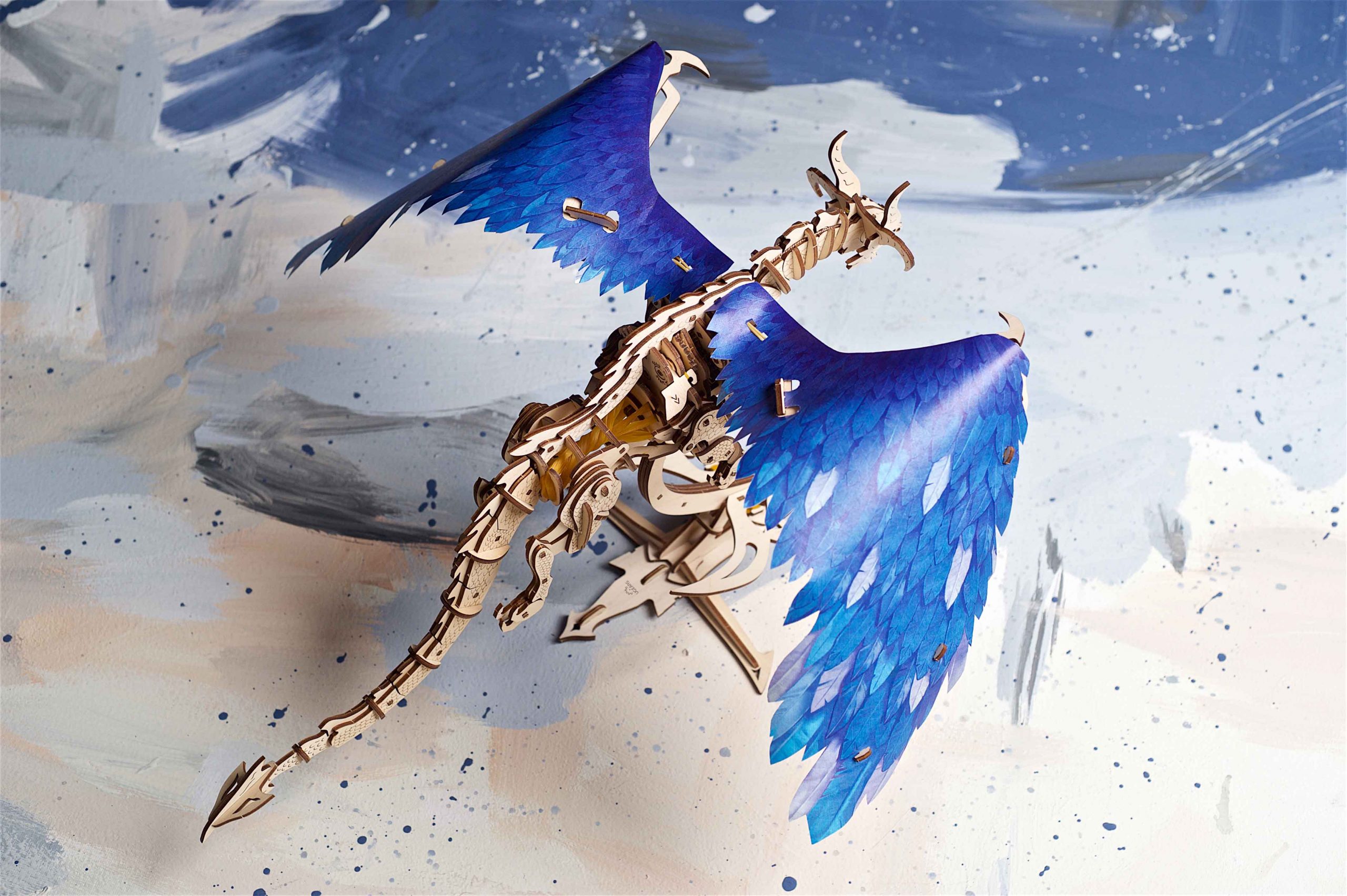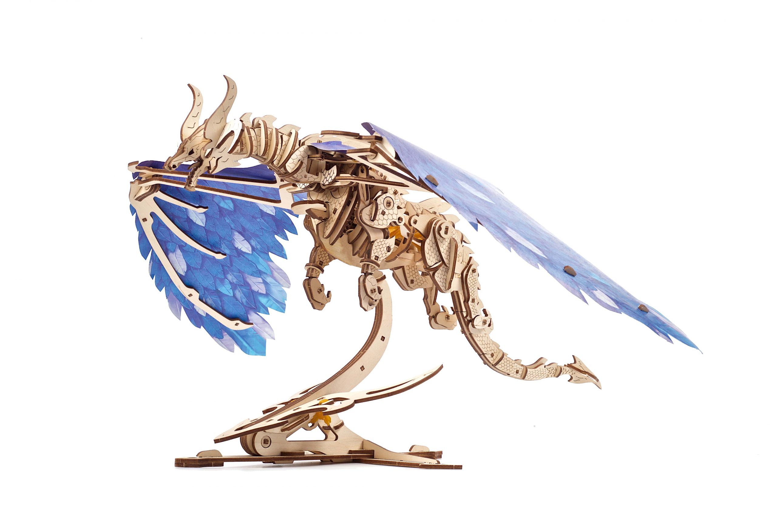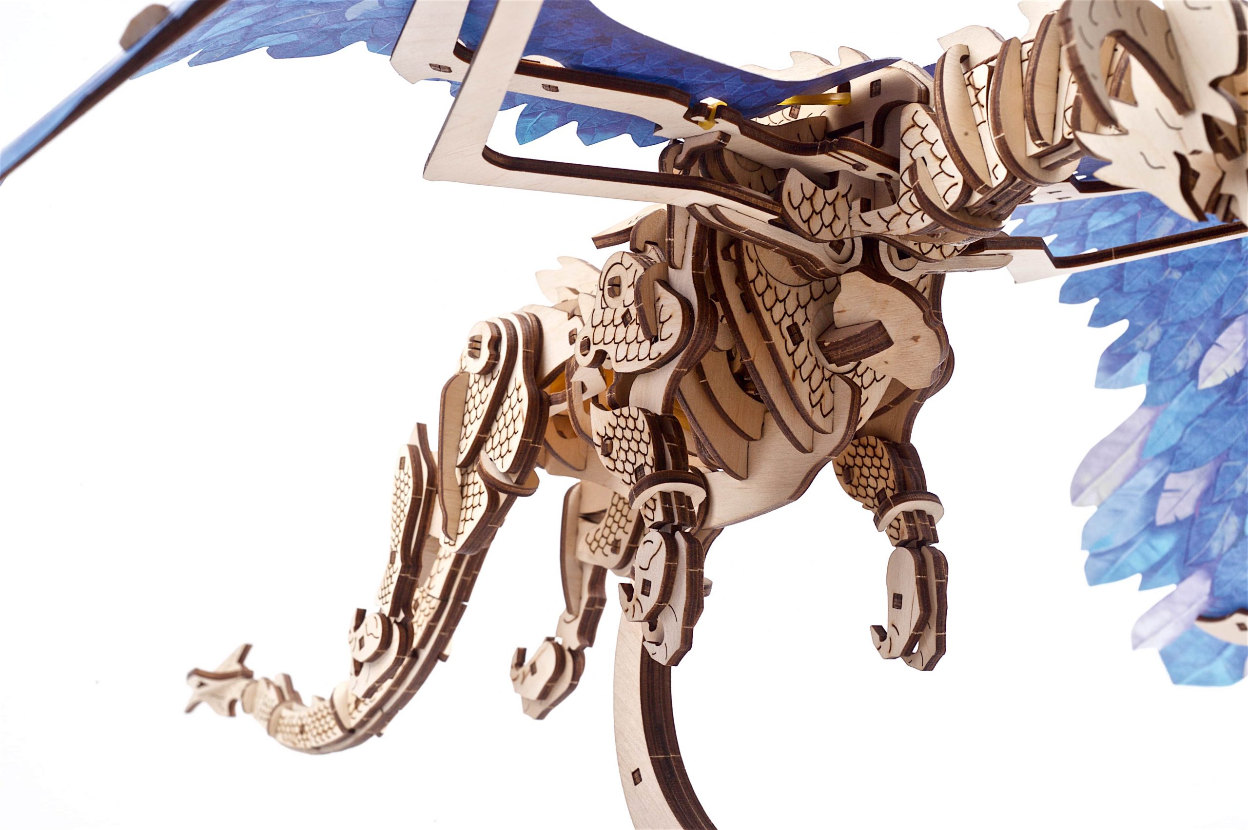 Aceasta este caracteristica foarte speciala a Dragonului Ugears: oasele aripilor sunt din lemn, dar acestora este din hârtie. Materialul mai moale si flexibil face ca zborul sa arate foarte realist si lasa loc imaginatiei tale.