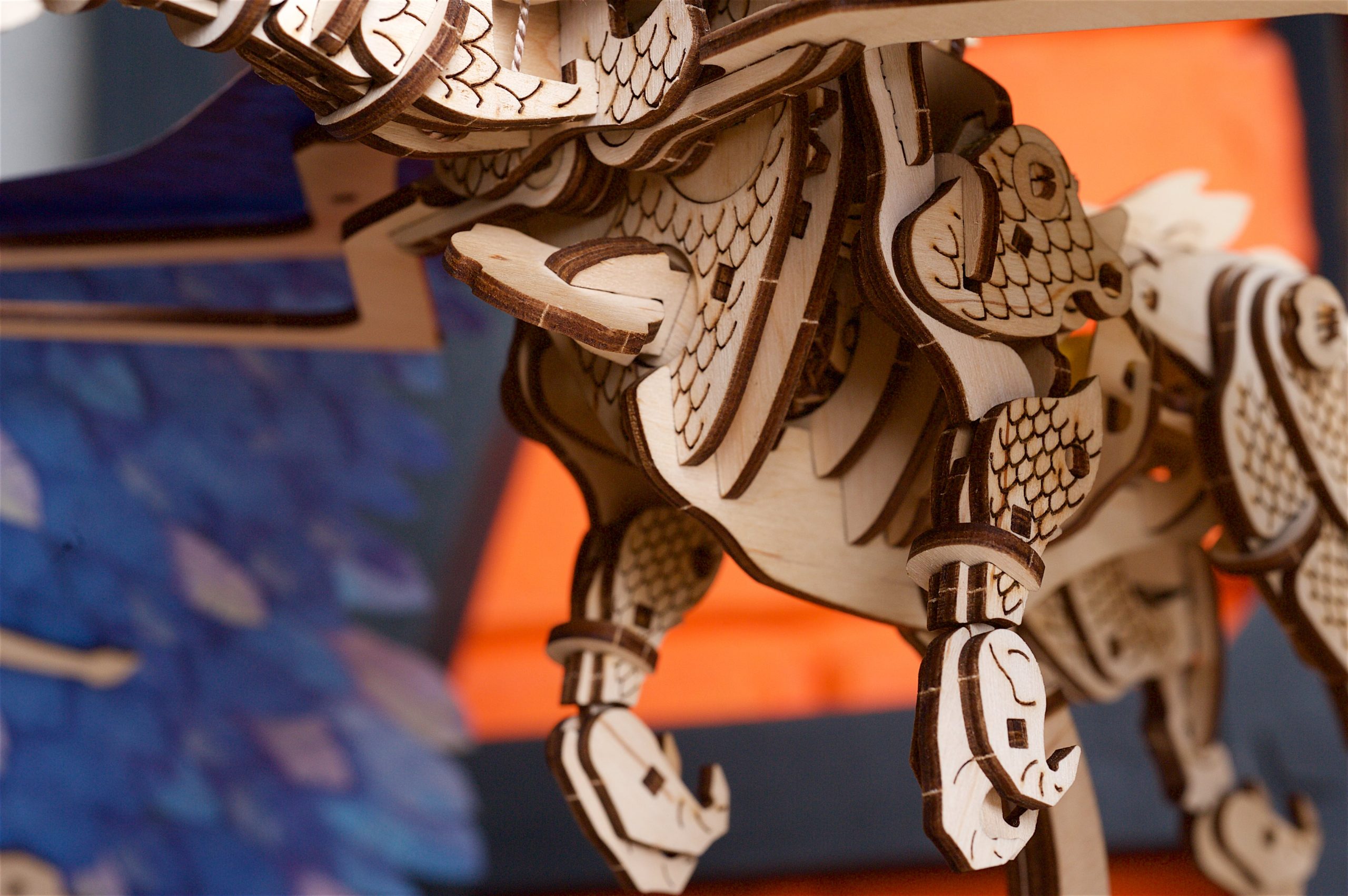 In mod traditional, modelul este realizat din materiale din lemn de inalta calitate si vine cu tot ce aveti nevoie pentru asamblare in cutie. Rezolva misterul mecanic al unei fiinte antice si devino un imblanzitor de dragoni cu modelul Dragonului Ugears!