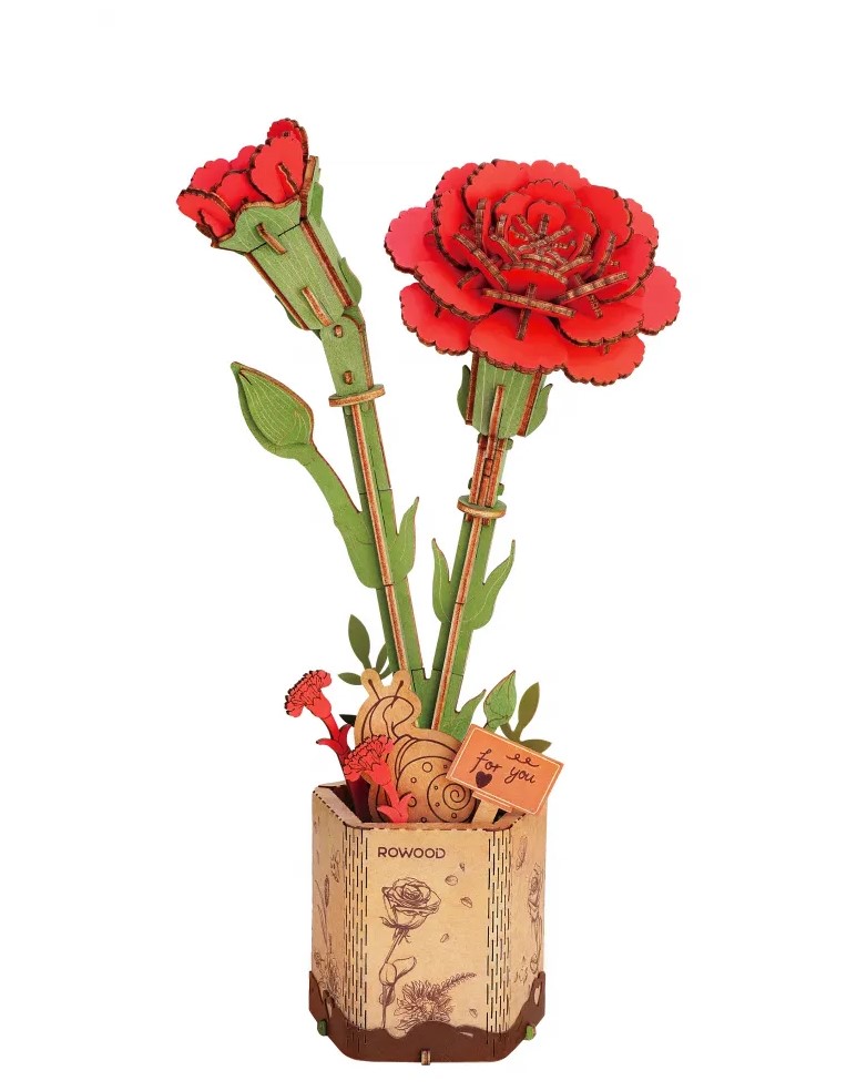 Acest semn „pentru tine” face din această garoafa roșie cadoul ideal. Altceva decât un album de însemnări sau un buchet de flori! Imaginați-vă că petreceți o după-amiază minunat de liniștită, înconjurat de parfumul lemnului proaspăt tăiat din acest kit de lemn, în timp ce asamblați garoafele roșii. Acest lucru se face prin împingerea a 124 de piese de puzzle din lemn din panouri și adunându-le împreună fără lipici! Într-un timp foarte scurt vei avea o floare frumoasă de lemn în mâini. Este modalitatea perfectă de a adăuga culoare oricărei încăperi din casa ta.