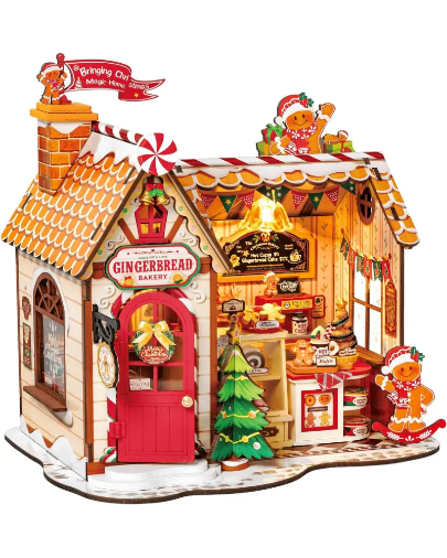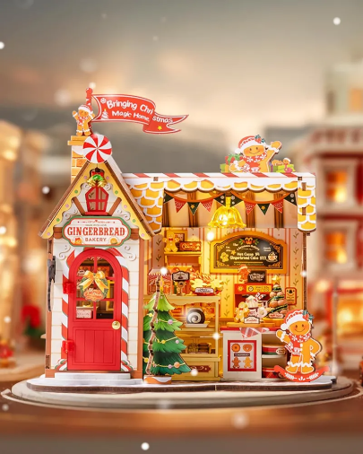 Trăiește magia Crăciunului cu Rolife Gingerbread House, un set DIY (Do It Yourself) fermecător care te poartă într-o lume de iarnă plină de căldură și nostalgie. Inspirată din casele clasice din turtă dulce, această miniatură din lemn îmbină detalii dulci, culori festive și lumini calde ce creează o atmosferă de basm.