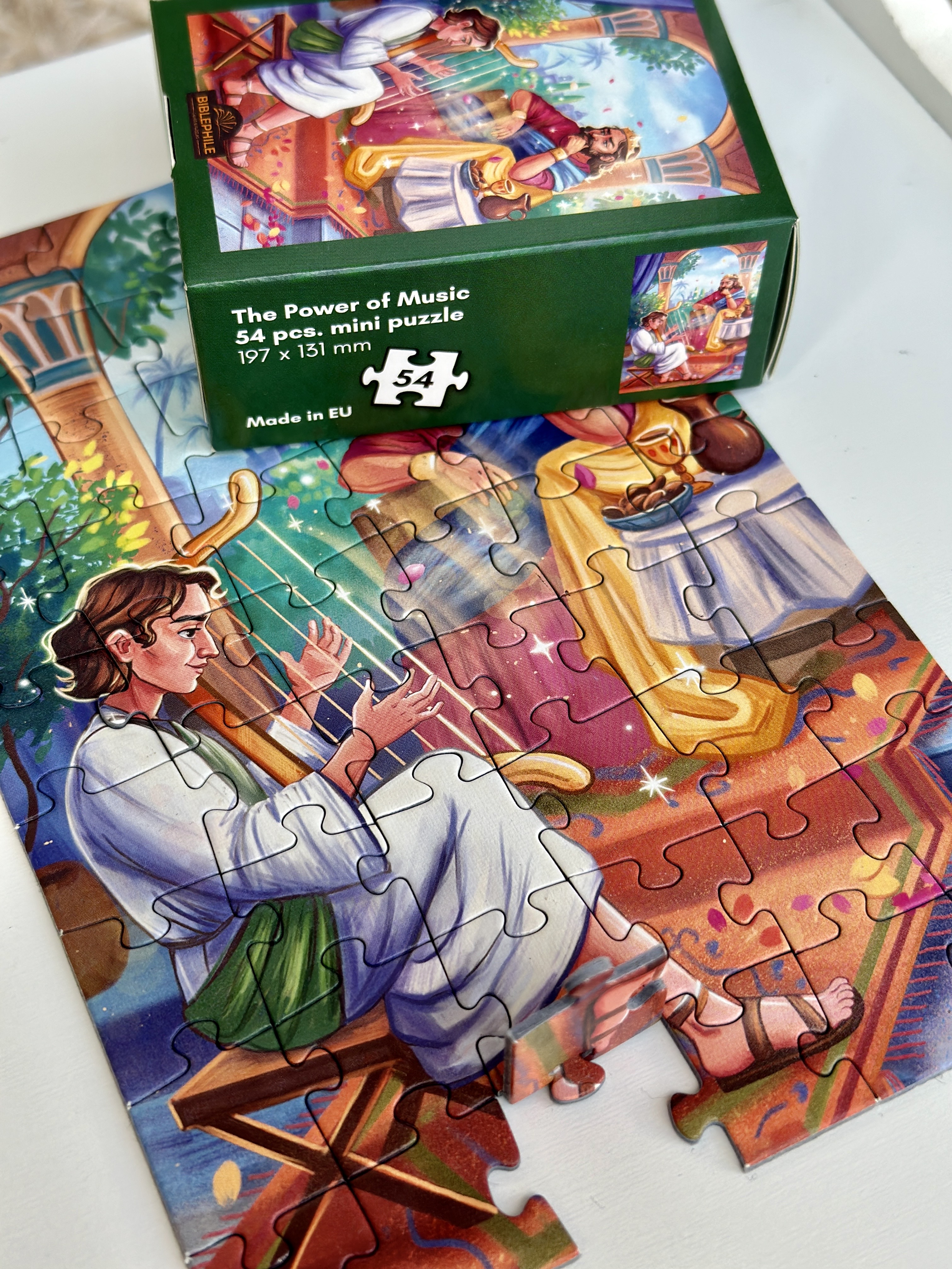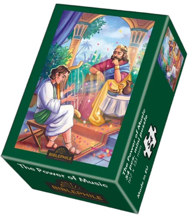 Acest mini puzzle te invită să analizezi efectele puternice ale muzicii asupra ființei umane, în timp ce ți-l imaginezi pe tânărul David, chemat la palatul regelui Saul pentru a-i cânta acestuia melodii liniștitoare (1 Samuel 16).