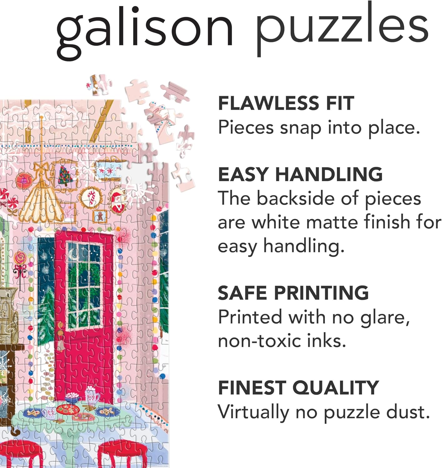 PUZZLE DE 500 DE PIESE – Puzzle-ul Joy Laforme Dulcebreckie Cottage de 500 de piese de la Galison prezintă o brutărie de Crăciun confortabilă, ambalată într-o cutie veselă în formă de căsuță de turtă dulce. Acest puzzle este exact nivelul potrivit de provocare pentru ca întreaga familie să se alăture ore întregi de distracție! Cutia include un insert cu imaginea completă a puzzle-ului pentru referință.