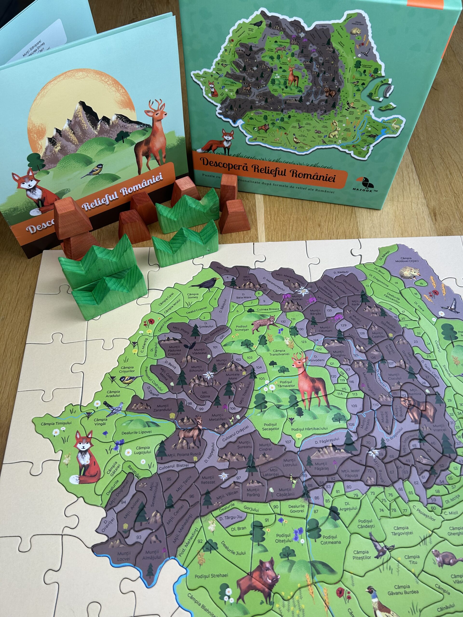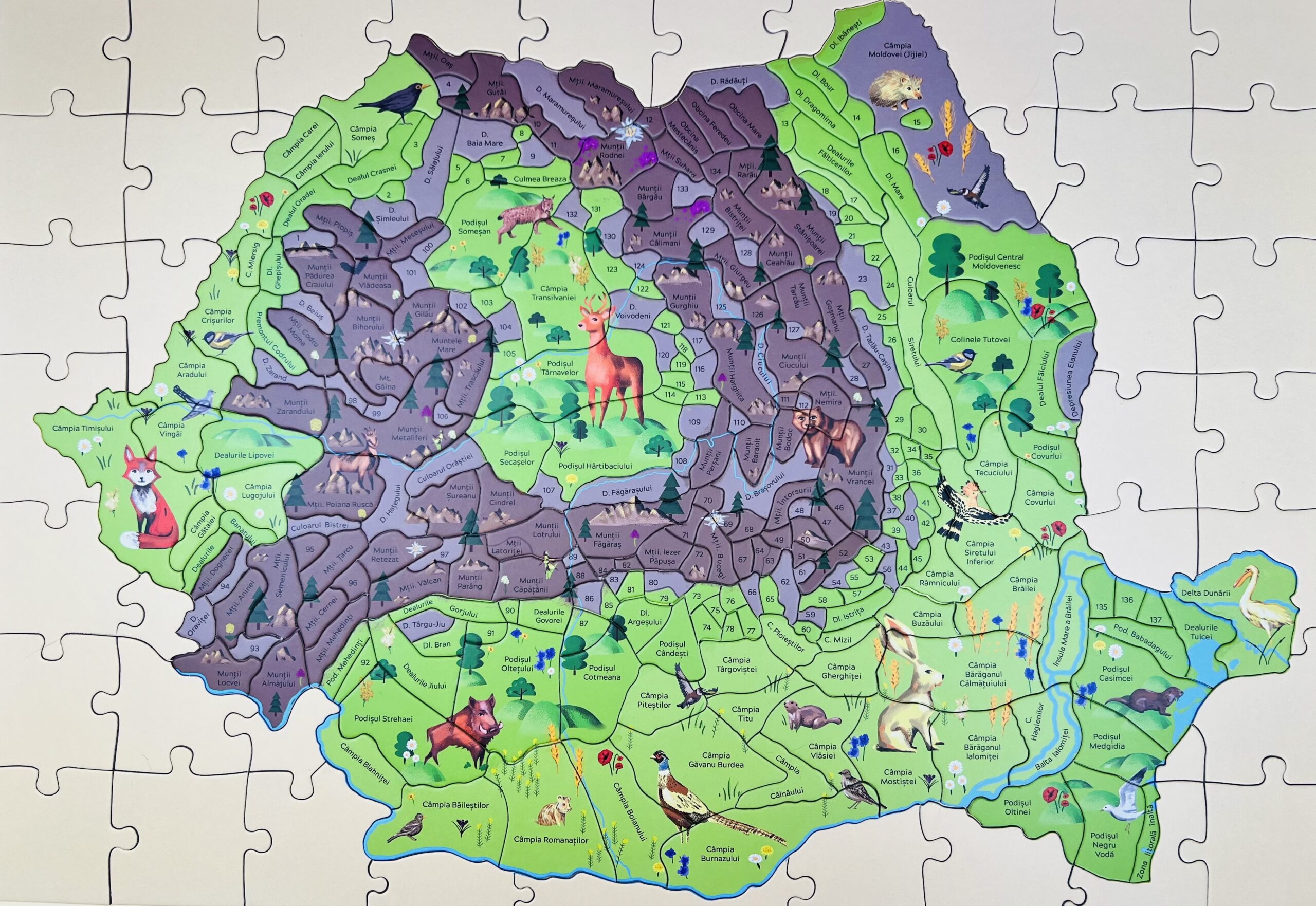 - 317 piese de puzzle personalizate după formele de relief ale României și subdiviziunile acestora
