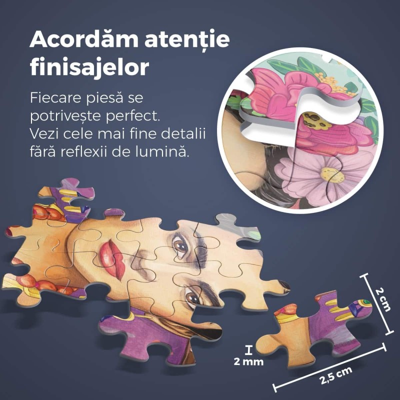 Ti-ai imaginat vreodata ce i-a inspirat pe marii artisti ai lumii sa creeze capodopere nemuritoare? Daca iubesti arta sau doar iti doresti o provocare pentru a-ti etala maiestria de asamblare a jocurilor puzzle, avem o recomandare superba pentru tine: puzzle 1000 piese Groos Zselyke - Frida Kahlo.