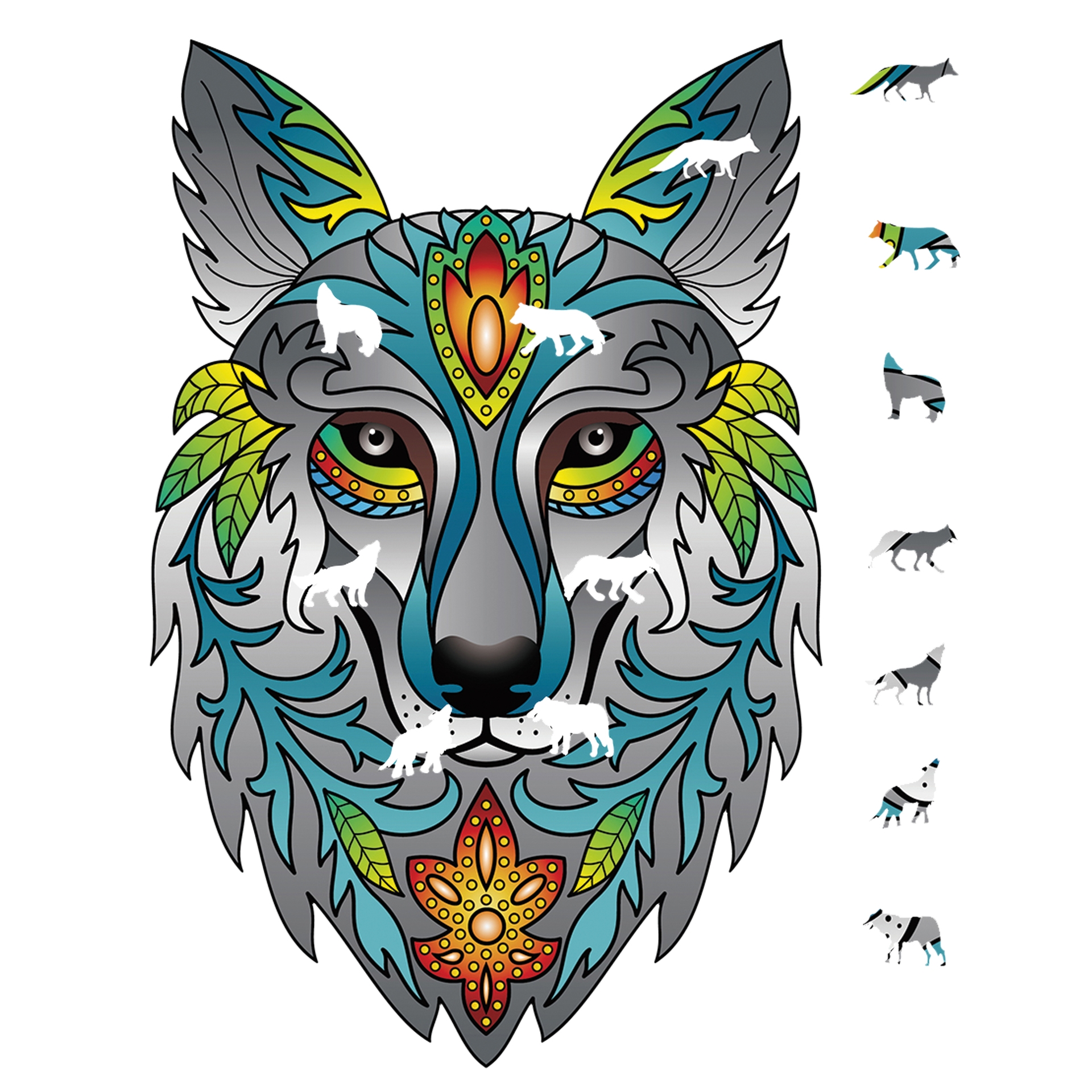 Acest puzzle înfățișând capul unui lup este perfect pentru copiii cărora le plac mult culorile și, de asemenea, care vor să-și dezvolte percepția vizuală.