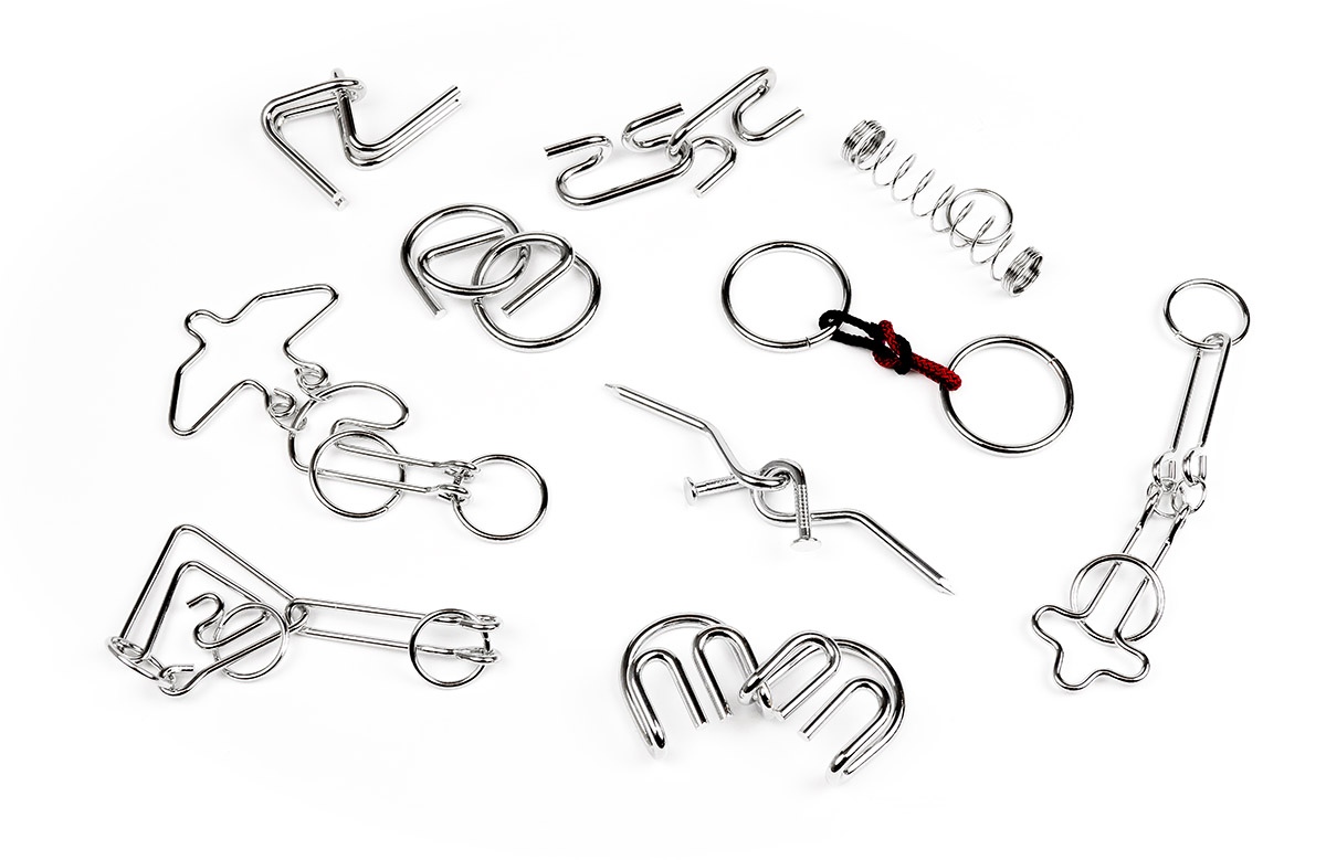 Făcut din oțel masiv, acest set de 10 puzzle-uri vă face să vă îndoiți mușchii cognitivi.