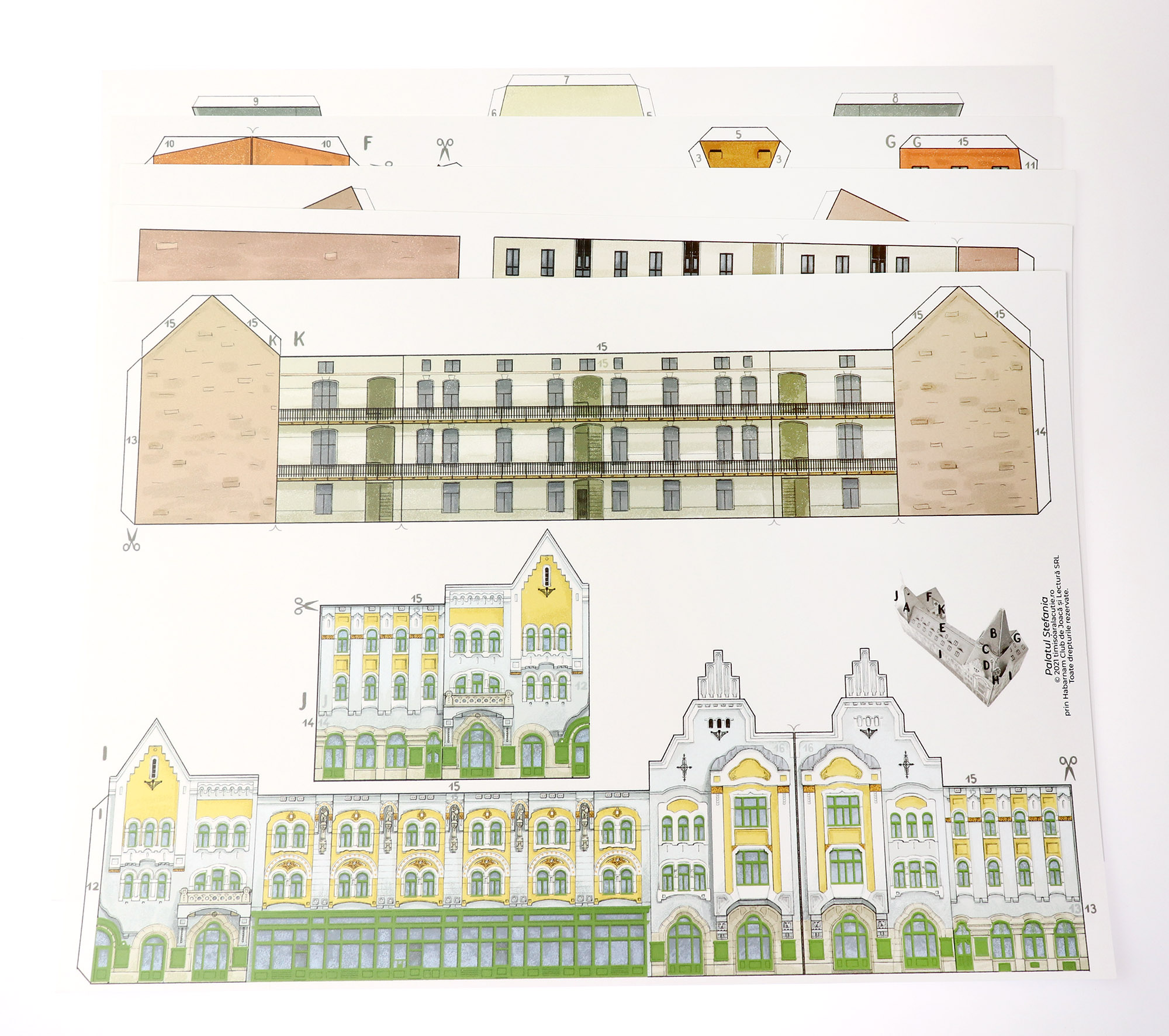 * 5 planșe pentru realizarea miniaturilor 3D a: Palatului Neptun, Palatului Ștefania, Palatului Mercur;