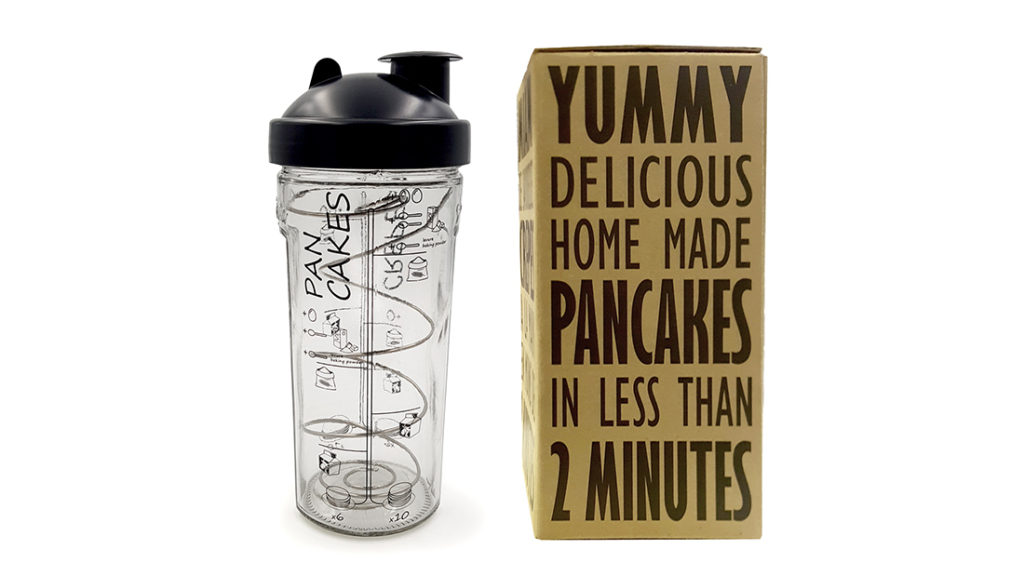 Shaker pentru aluat de clatite, pancakes si vafe, extrem de simplu de folosit: puneti toate ingredientele la un loc (reteta e inscriptionata pe el), amestecati, si in 2 minute puteti sa incepeti sa le gatiti!