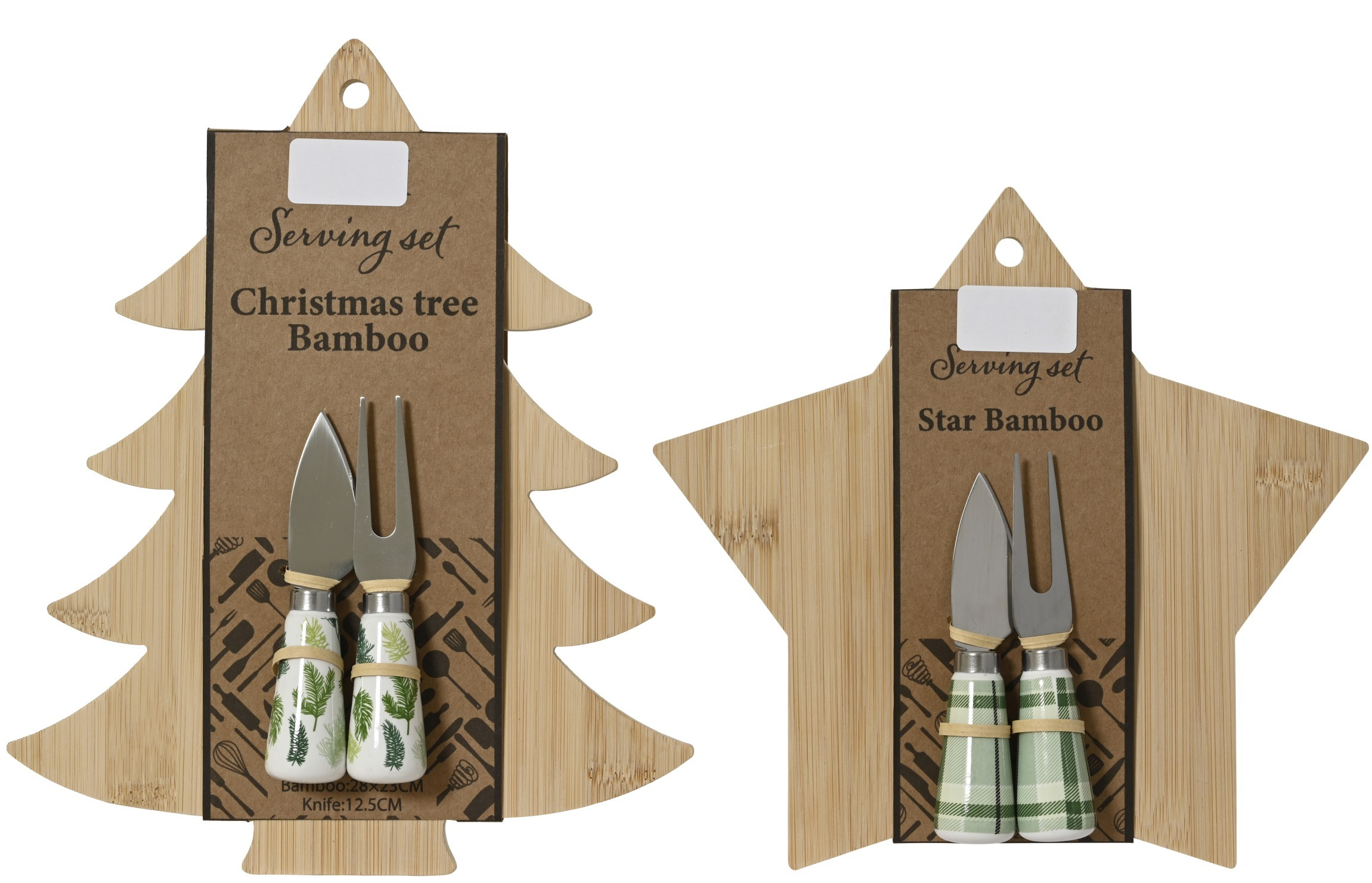 Tocator din lemn de bambus cu accesorii - Brad / Stea (doua modele, pret pe bucata)