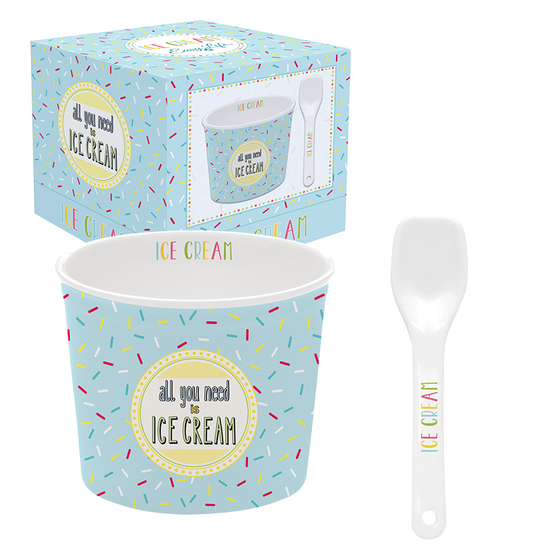 Acest bol de înghețată din porțelan este însoțit de o linguriță, astfel te poți bucura oricând de cele mai dulci momente ale verii!