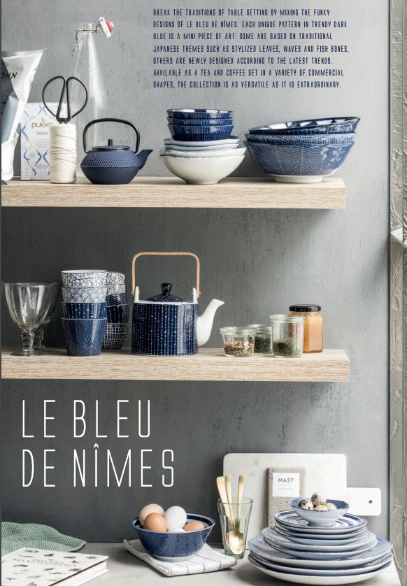 Mix and match bolurile si farfuriile din colectia Bleu de Nimes. Imprimeurile desenate in portelan albastru sunt inspirate din tematici traditionale Japoneze.