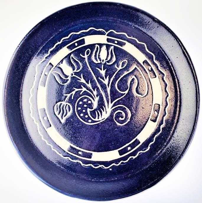 Farfurioara din ceramică este lucrată manual pe roata olarului și este decorată cu minunate simboluri săsești.