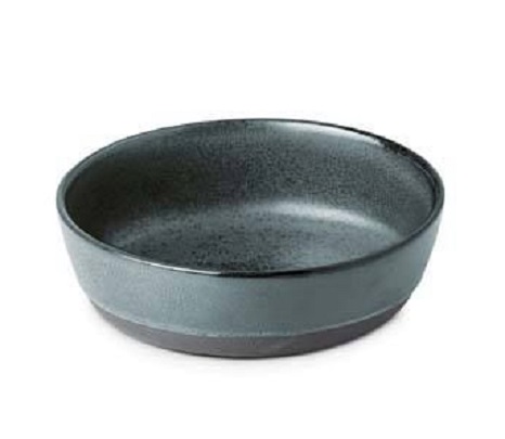 Farfurie adâncă de culoare verde închis în nuanță acelor de pin, cu mici particule gri, realizată manual din ceramică arsă de două ori.