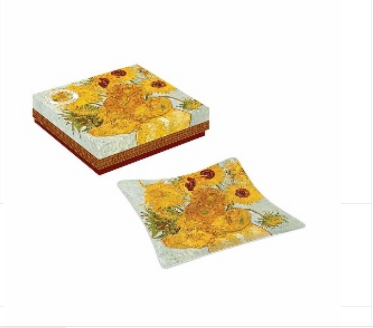 Platou din sticla de calitate, decorat cu celebra pictura a lui Vincent van Gogh, "Vaza cu douasprezece flori"