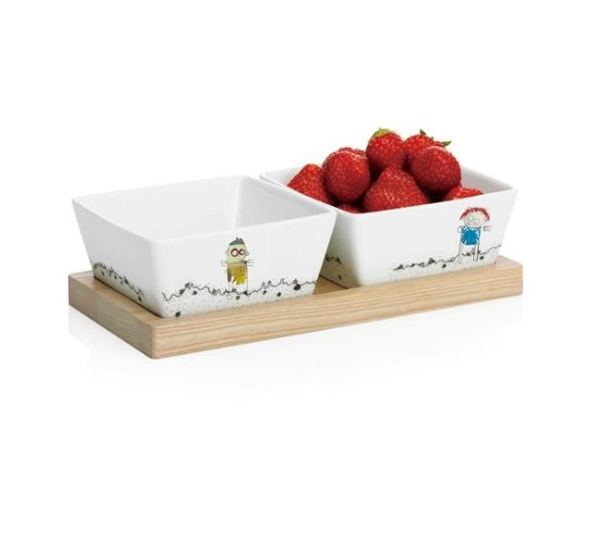 Set tava din lemn cu 2 boluri - Be friends.