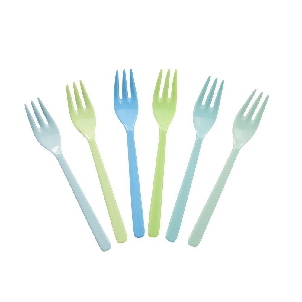 Set 6 furculite pentru tort - Blue and Green, din melamina fara BPA.