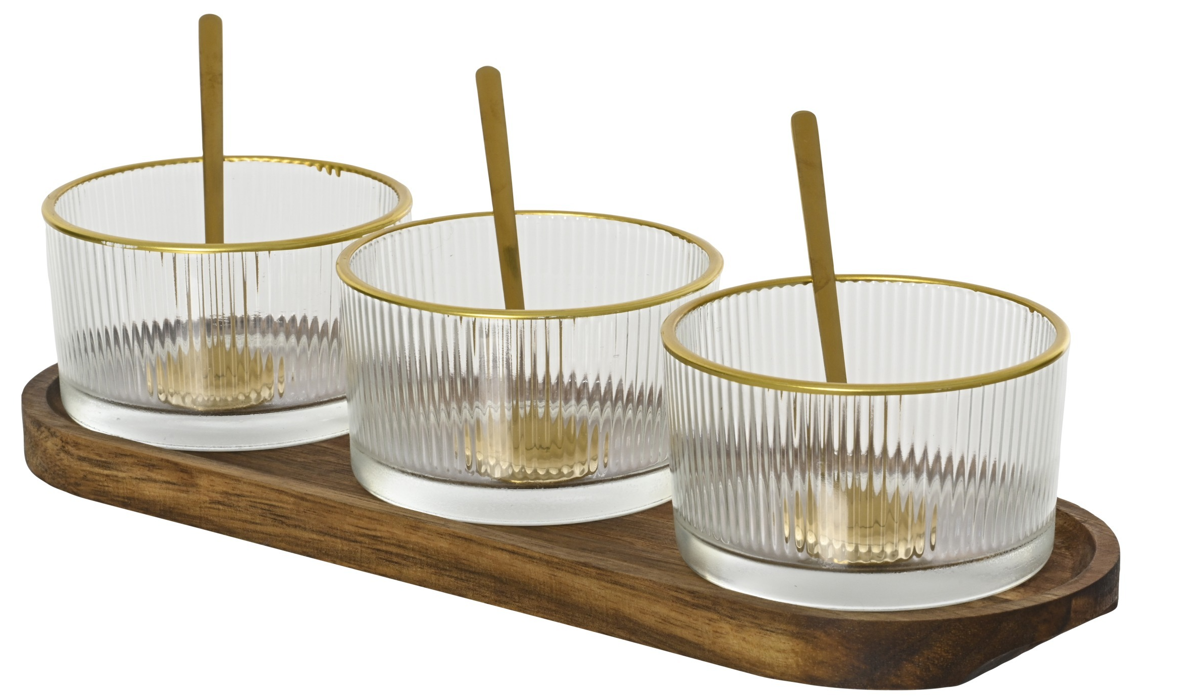 Set pentru tapas - 3 boluri de sticlă cu lingurițe