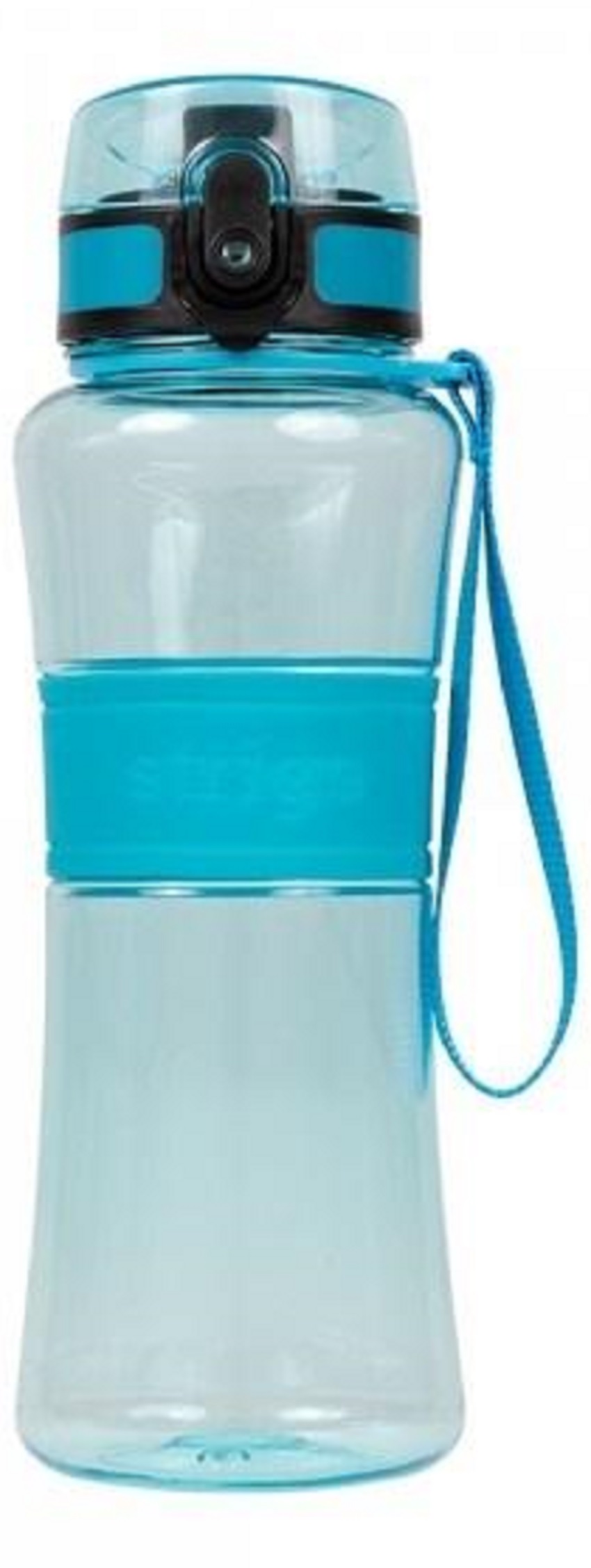 Sticlă de apă cu mâner confortabil, manșon din silicon și capac.