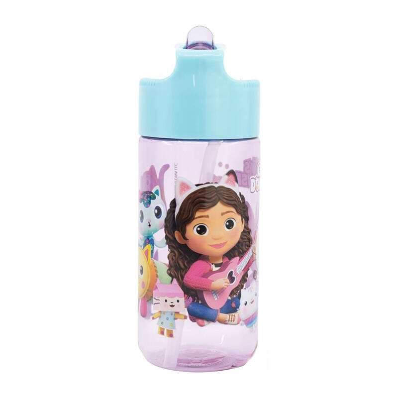 Produsă din plastic (tritan) și cu o capacitate de 430 ml, sticla de apă cu pai pentru copii Gabby's Dollhouse de la Stor este ideală pentru călătorii și deplasări de zi cu zi.