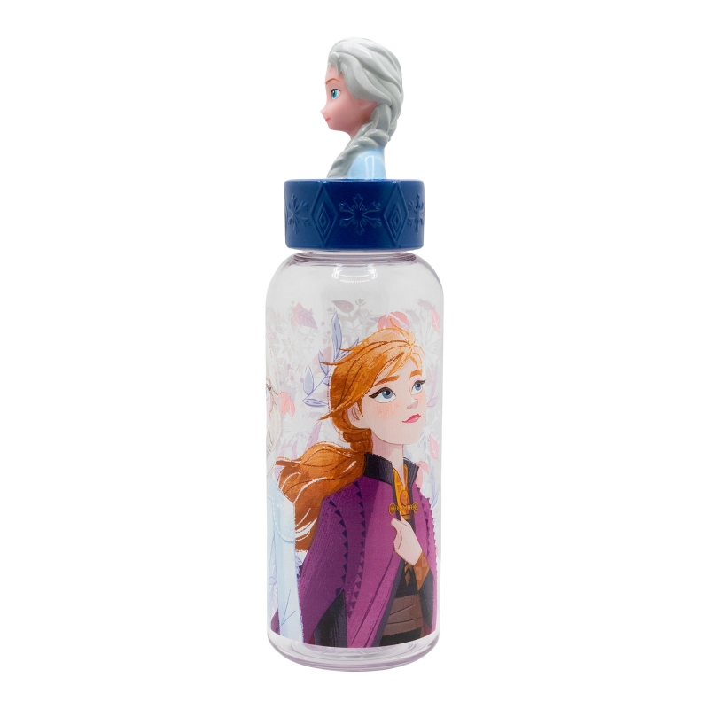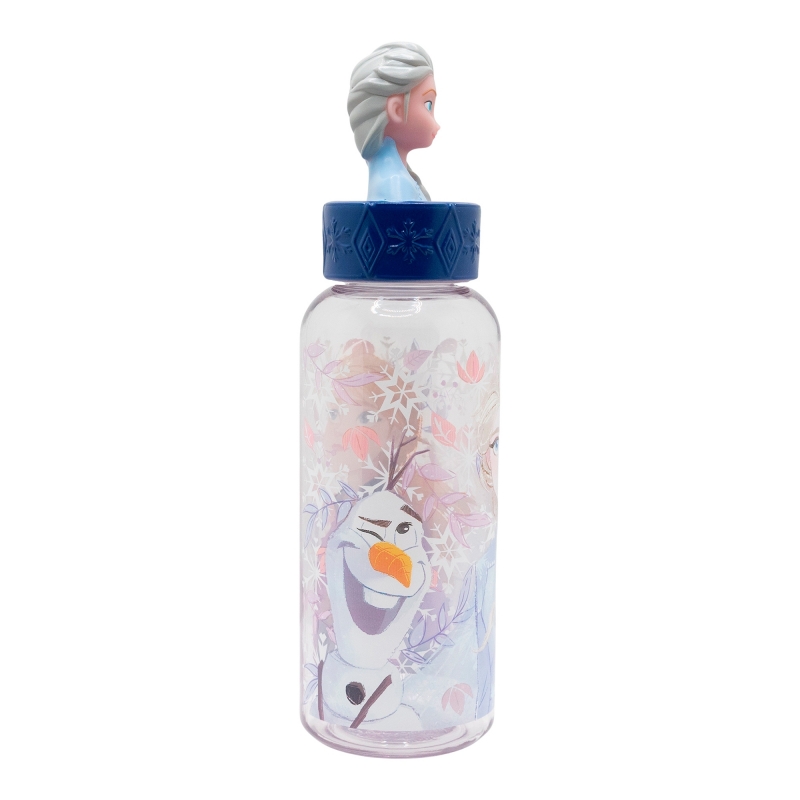 Sticlă originală de plastic în forma unora dintre personajele preferate ale copiilor. Cu ea, copiii pot bea cu ușurință datorită paiului încorporat.