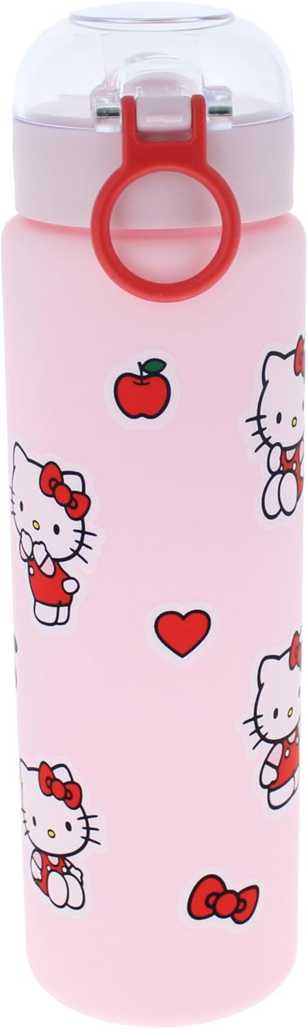 Design fermecător cu Hello Kitty: Împodobită cu imagini emblematice cu Hello Kitty, această sticlă de apă roz, moale la atingere, este la fel de drăguță pe cât este de practică.