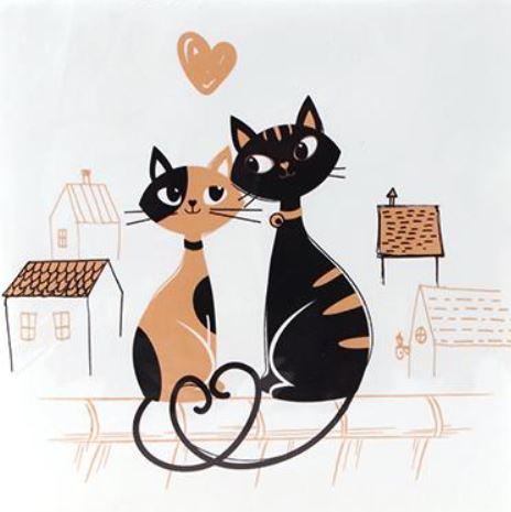 Suport farfurie - Rodolphe are dimensiunile de 20 X 20 cm, iar ilustrația de pe suprafața acestuia arată două pisici îndrăgostite.