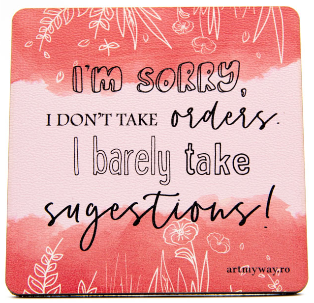 O colectie de suporturi de pahar (coasters), vesele si pline de autoironie. Fiecare model contine un citat ce iti va aduce zambetul pe buze, o colectie de ganduri uneori profunde, motivationale, alteori comice, menite sa ne ofere o stare de bine.