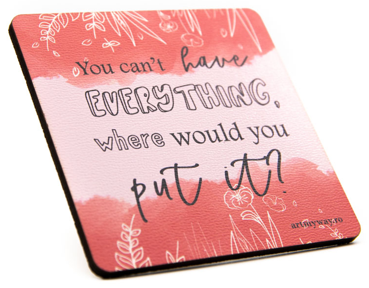 O colectie de suporturi de pahar (coasters), vesele si pline de autoironie. Fiecare model contine un citat ce iti va aduce zambetul pe buze, o colectie de ganduri uneori profunde, motivationale, alteori comice, menite sa ne ofere o stare de bine.