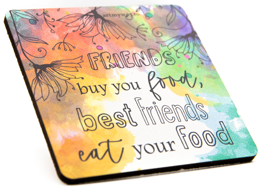 Suporturile de pahar sunt realizate pe baza lemnoasa, imprimate UV cu diverse imagini personalizate.