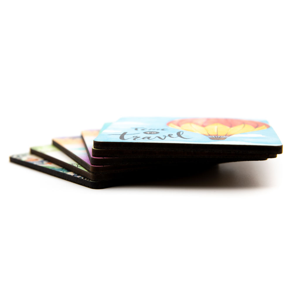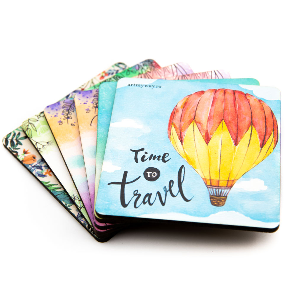 Suporturile de pahar sunt realizate pe baza lemnoasa, imprimate UV cu diverse imagini personalizate.