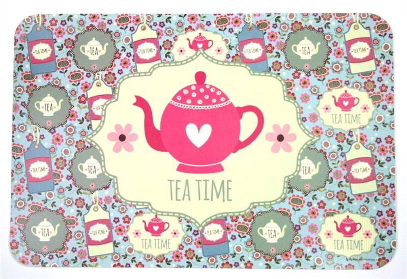 Suport pentru masa multicolor, decorat cu ceainice si flori - Tea Time