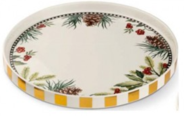 Tavă rotundă mare de Crăciun din ceramică, decorată cu tematică de Crăciun
